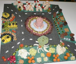 Si può utilizzare radicchio a julienne nelle zone in verde, al posto della carta verde per alimenti.