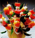 Infilate negli spidini prosciutto, mozzarellina, uva, melone, anche cambiandone la successione.